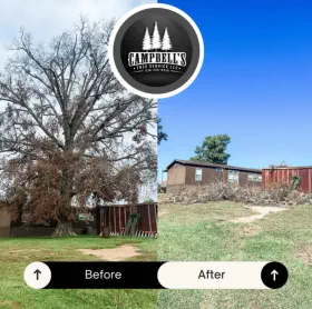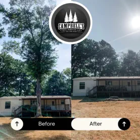 See the difference professional tree care can make. At Campbell’s Tree Service, we take pride in transforming properties across Shelby County, Texas. Whether it's removing dangerous trees, clearing overgrown land, or shaping and pruning to improve beauty and safety, our results speak for themselves. Browse our before-and-after photos to see: Hazardous tree removals made safe Clean, open yards after overgrown brush clearing Beautifully pruned trees improving curb appeal Storm-damaged areas fully cleaned and restored From emergency storm cleanup to planned property improvements, we deliver reliable, skilled service backed by 40+ years of experience. CLICK ON PICS TO ENLARGE: